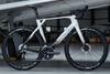 Electronic shifting, an extremely rigid and aerodynamic frame allows both regular cyclists and racers to reach the highest speeds on the road. The bike is approved for all UCI races. Carbon cockpit, seat post, and wheel rims. Top-of-the-line Shimano Di2 Ultegra components.